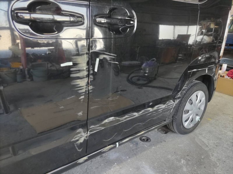 静岡県伊東市|N-(ホンダ)のキズ・へこみ直し事例(右側リヤドア・スライドア周辺鈑金修理になります。)
