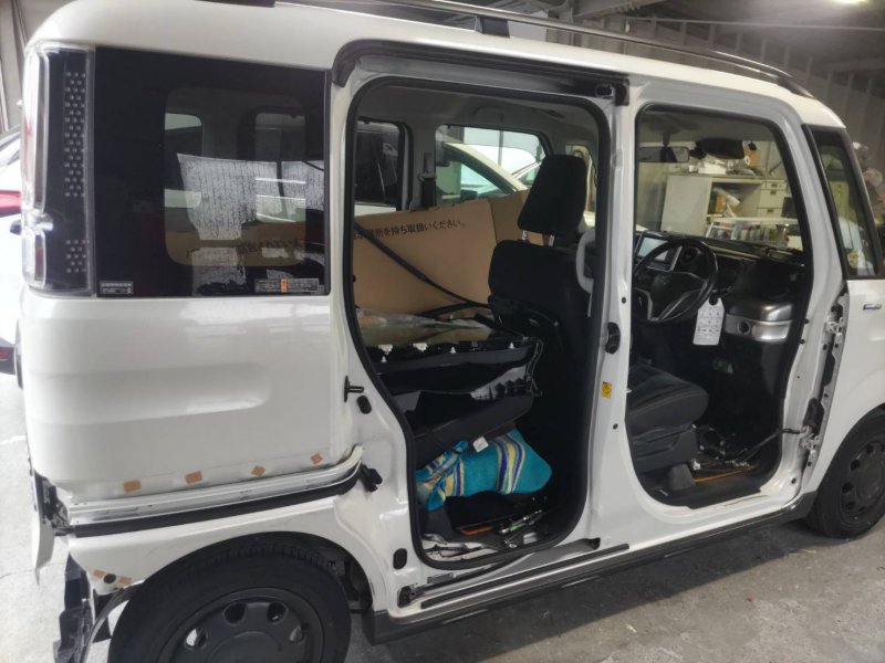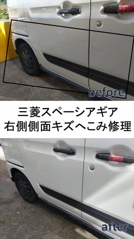 静岡県伊東市|スペーシアギア(三菱)のキズ・へこみ直し事例(右側側面キズへこみ修理 フロントドア、リヤドア、スレイドレール交換、リヤフェンダー周辺鈑金)