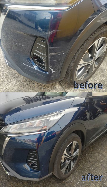静岡県伊東市|キックス(日産)のキズ・へこみ直し事例(フロントバンパースリキズ修理)