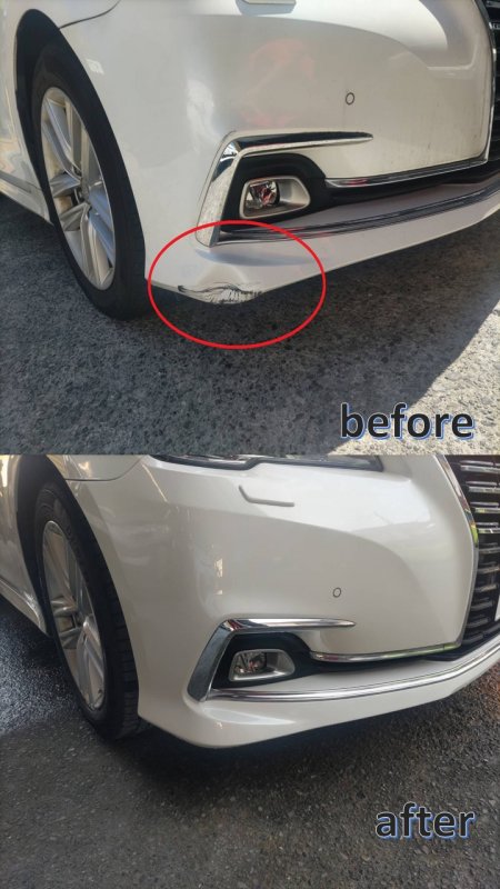 | 修理の箇所・サービス内容 | フロントバンパーキズへこみ修理になります。 |