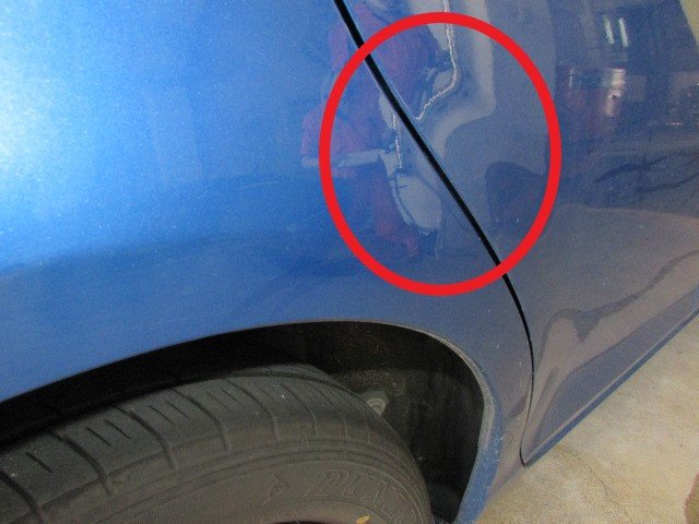 福井県福井市|プリウス(トヨタ)のキズ・へこみ直し事例(リアドア・リアフェンダー鈑金塗装)