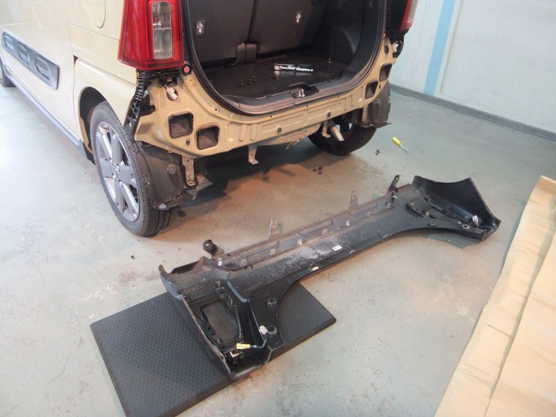 リヤバンパにはセンサーやモール等の様々な部品が有ります。