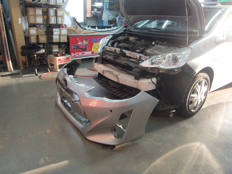 横浜市 旭区 鶴ヶ峰本町 カーコンビニ俱楽部 ビショップ トヨタ アクア フロントバンパ交換 鈑金塗装修理 キズ修理 ヘコミ修理 磨き・傷落とし