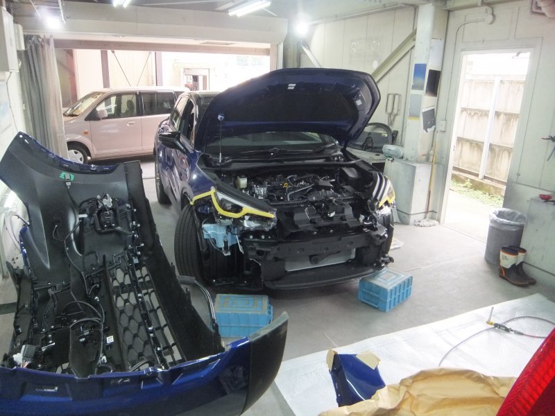横浜市 旭区 鶴ヶ峰本町 カーコンビニ俱楽部 ビショップ マツダ フレアワゴン フロントフェンダー フロントバンパ交換 鈑金塗装修理 キズ修理 ヘコミ修理 磨き・傷落とし