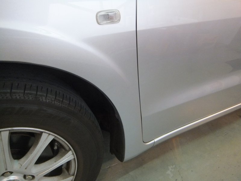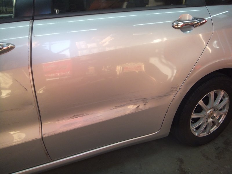 今回の修理は、左側面のフロントからリヤバンパの広範囲でした。