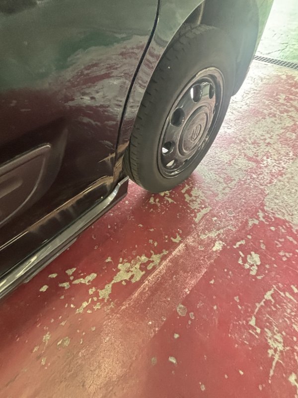 スペーシアにお乗りのお客様より内輪差にて壁にリアドアやフェンダー部分をぶつけてしまい傷ができた為、修理のご依頼で来店頂きました。