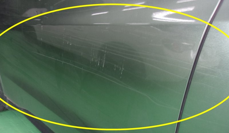 車の左側面全体に同様の擦り傷がありました。全体のキズ修理をして、再塗装をして直します。