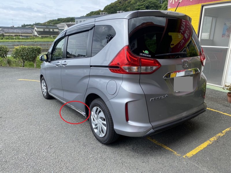 静岡県浜松市浜北区|フリード(ホンダ)のキズ・へこみ直し事例(左スライドドア鈑金塗装修理 左サイドシルパネル鈑金塗装修理)