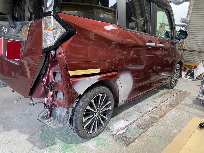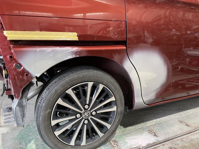 トヨタルーミー リヤフェンダー周辺鈑金修理になります。