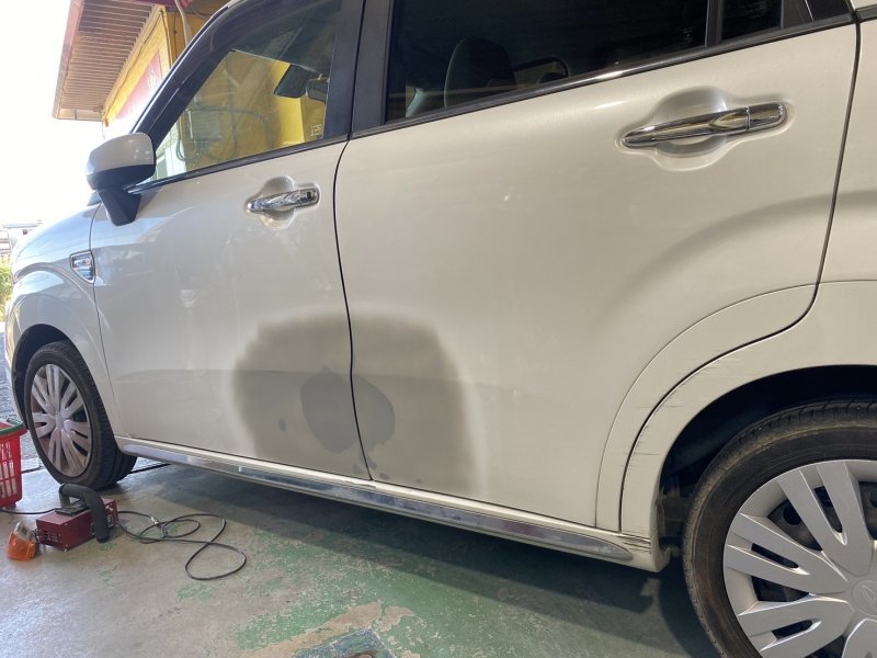 ダイハツスキャスト フロントドア、リヤドアキズへこみ修理になります。