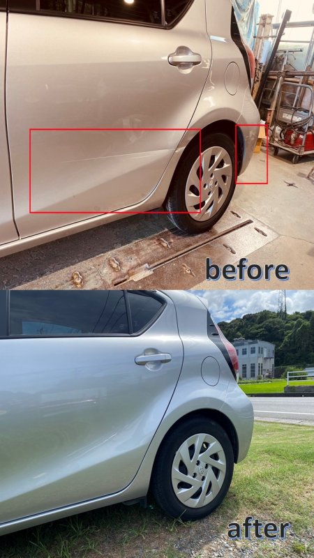 静岡県浜松市浜名区|アクア(トヨタ)のキズ・へこみ直し事例(左側リヤドア、リヤフェンダー周辺キズへこみ修理になります。)