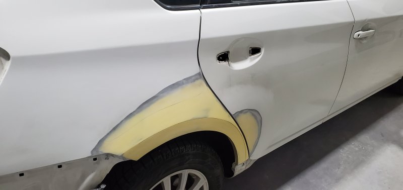 フェンダーはパテまで終わらせて、これからサフェーサーを塗ります。バンパーは割れ補修の工具を使って修理!