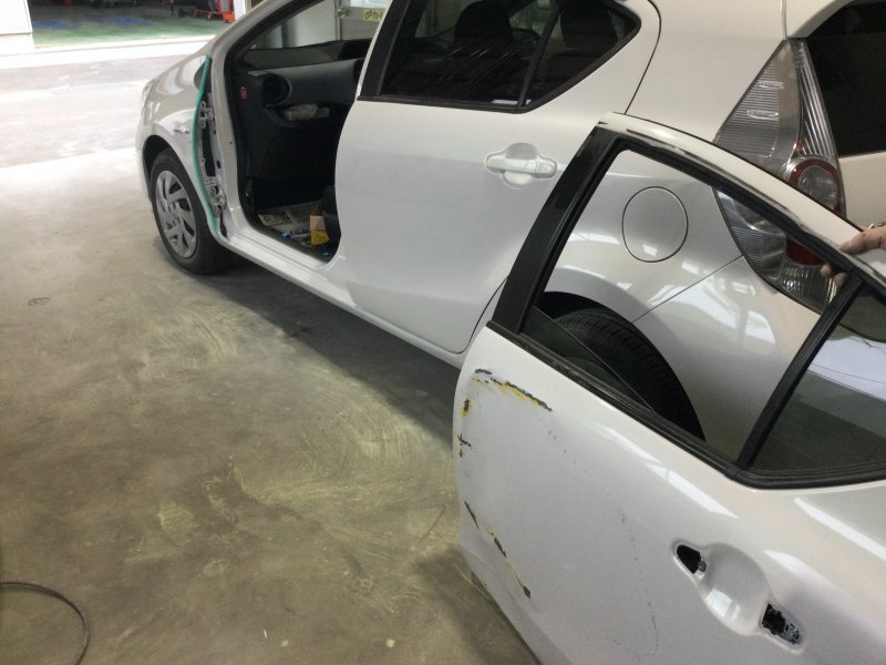 新潟市 アクア フロントドア〜リヤドア修理 中古ドア交換 板金修理