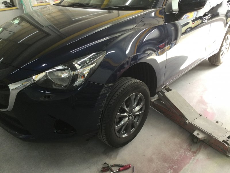 バンパーが裂けていたので、バンパーを外して裏から裂けた所を溶接しました。