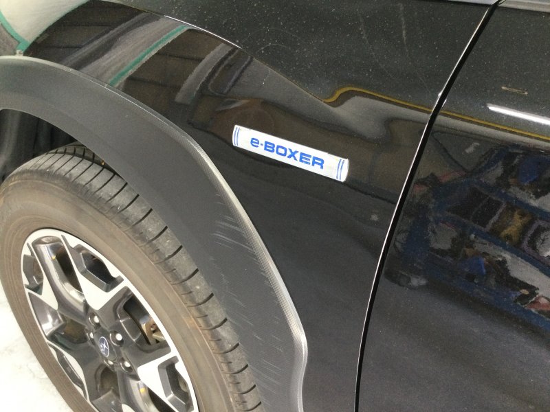 スバルXVのフロントフェンダーの板金修理とフェンダーカバーの交換作業です!