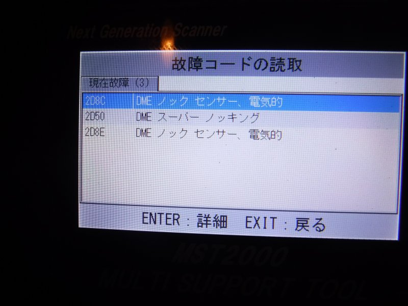 診断機にてチェックしたところ、ノックセンサーの異常であることがわかりました。
