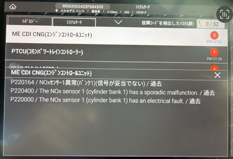 メインのエラーはNOXセンサーですがO2センサーの故障事例も