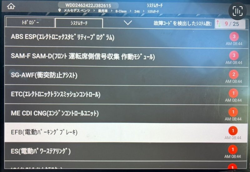 診断機点検にて複数のエラーが確認できました。