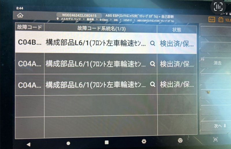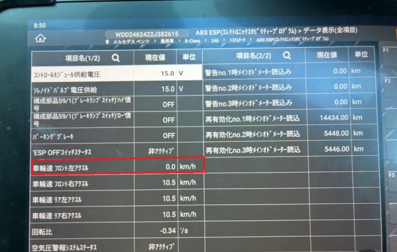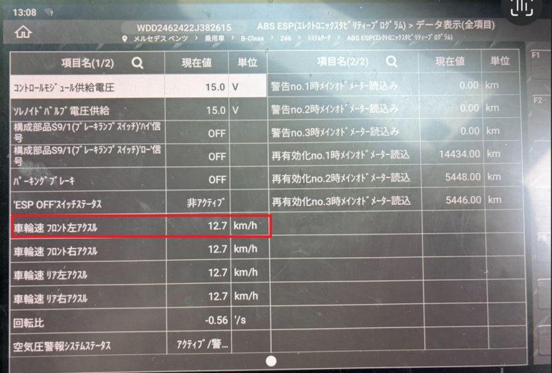 メルセデスベンツ B180 W246 エンジン警告灯 ホイールスピードセンサー