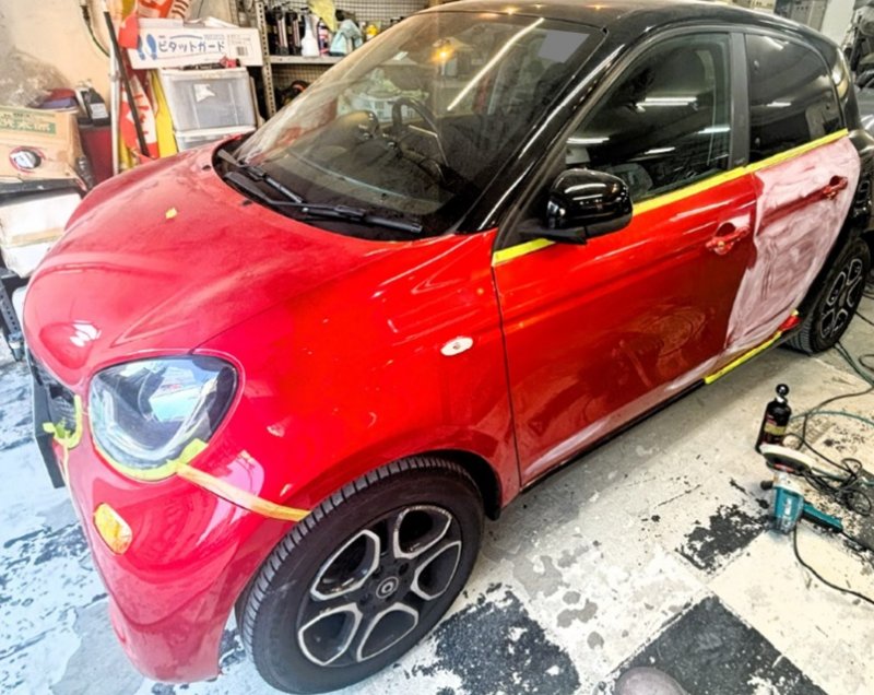 カーコンビニ俱楽部環8ストリート蒲田東店です。今回は、スマートにお乗りのお客様から、下処理付きボディーコーティングのご依頼をいただきました。