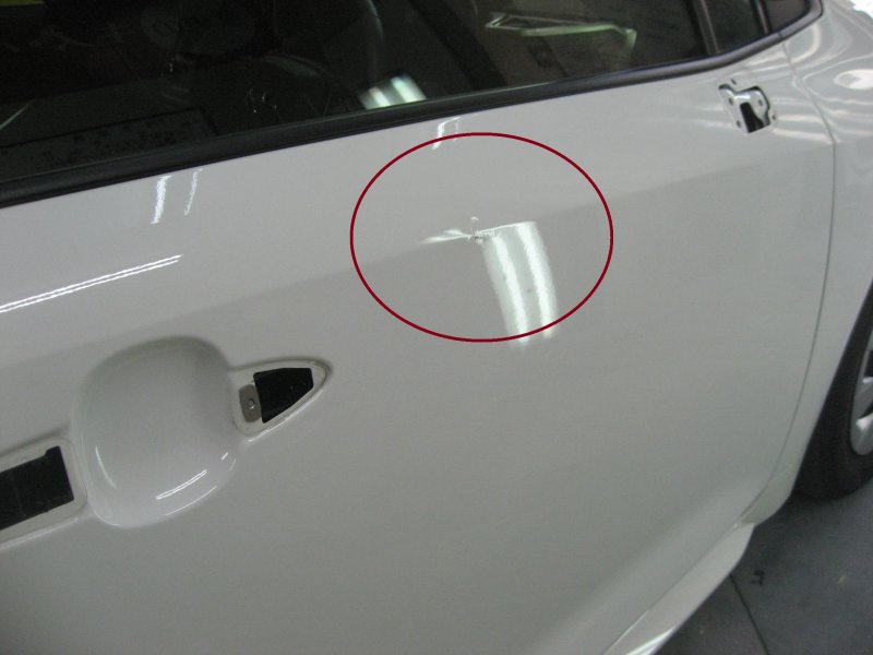 名古屋市名東区 千種区 守山区 長久手市 トヨタ・カローラツーリング右フロントドアキズ・へこみ修理事例