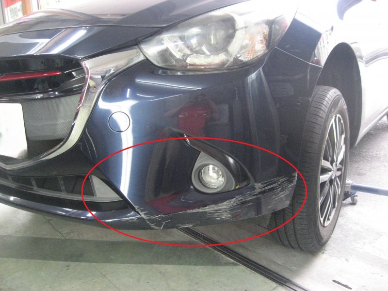 名古屋市名東区 千種区 守山区 長久手市 マツダ・デミオ・フロントバンパーキズ・へこみ修理事例
