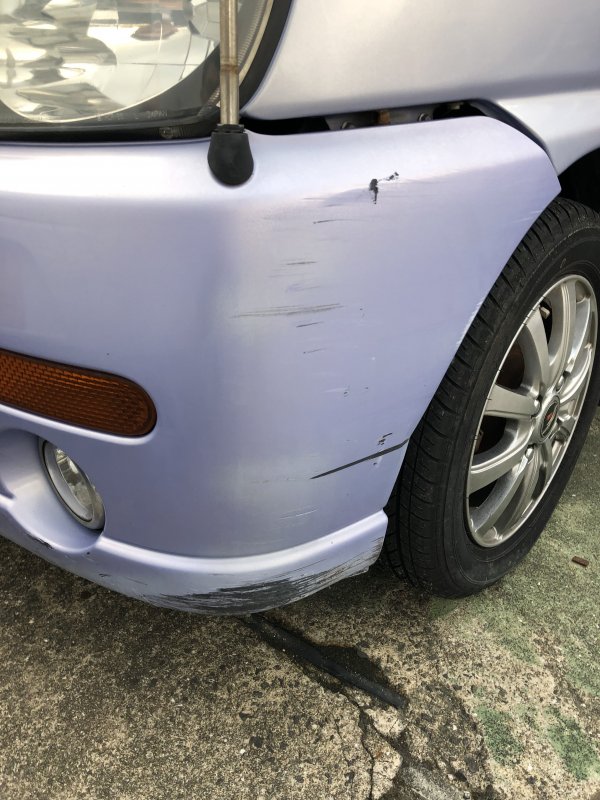 沖縄県うるま市|プレオ(スバル)のキズ・へこみ直し事例(フロントバンパー)