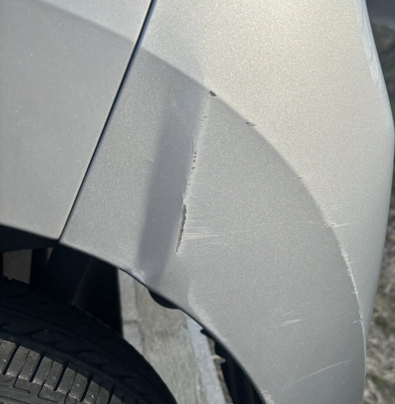 ブロック塀などに当ててしまい、バンパーパネルに傷や変形が出来たため、修理のご相談でご来店を頂きました。