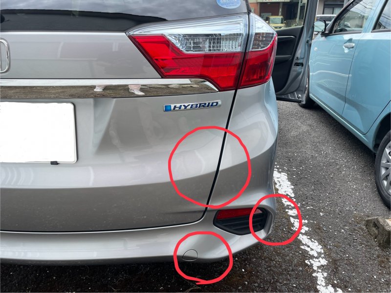 奈良県 大和高田市 ホンダ シャトル ハイブリッド リヤゲート リヤハッチ バックドア リヤバンパー 擦り傷 凹み 板金 塗装 車の傷 車の修理 安い