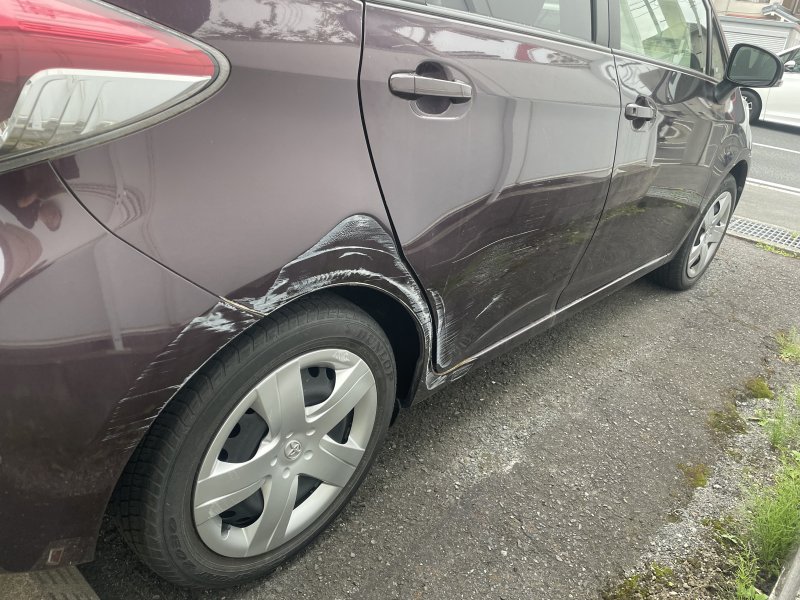 奈良県 大和高田市 トヨタ プリウス 左リヤ側面 傷 凹み 鈑金 塗装 車の傷 車の修理
