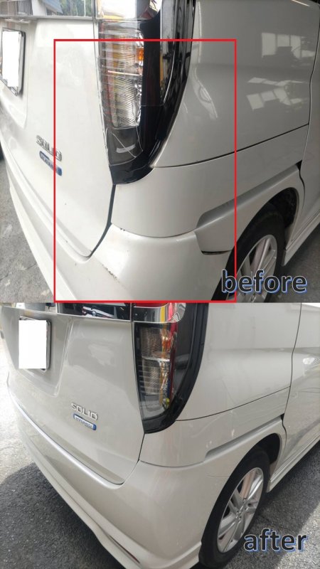 岐阜県羽島郡岐南町|ソリオ(スズキ)のキズ・へこみ直し事例(リヤバンパー、テールランプ交換修理になります。)