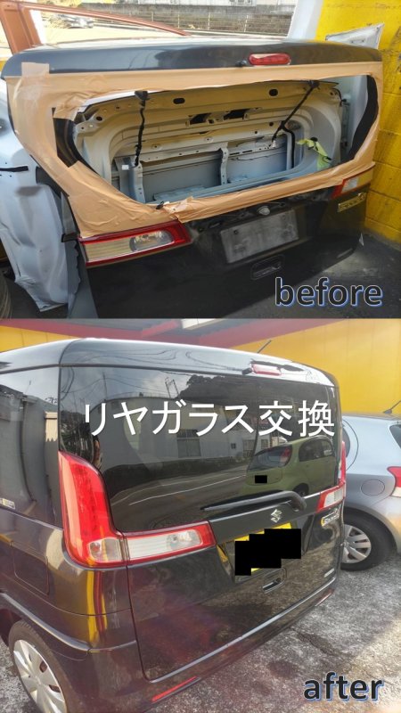 | 修理の箇所・サービス内容 | リヤガラス交換、リヤゲート交換 |