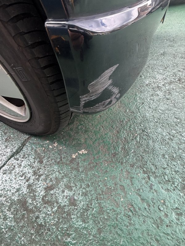 エブリーワゴンにお乗りのお客様よりハンドル操作を誤りバンパーを外壁に擦ってしまいスリキズが出来たため、修理のご相談でお越し頂きました。