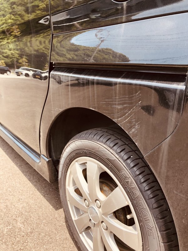 ハンドル操作を誤りフェンダーにヘコミや擦り傷でできてしまい、修理のご相談でご来店頂きました。
