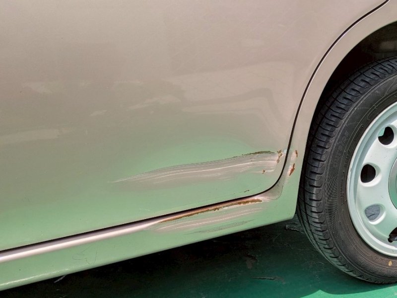 左リアドアと左ロッカーパネル(ステップ部分)は、傷とへこみだけでなく錆も出ていました。鈑金作業の際に錆を除去し、塗装前には錆止め処理を行うので修理後に錆が広がる心配はありません。