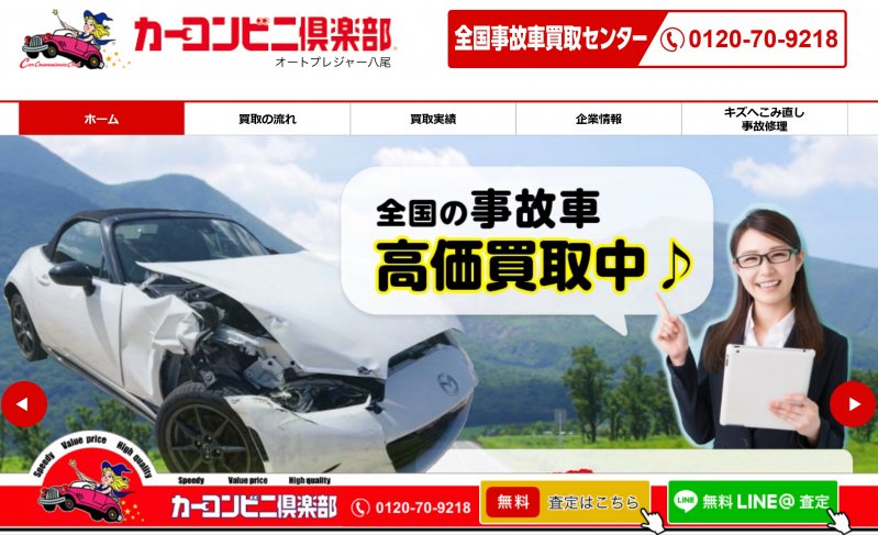 修理が出来ないほど大破してしまったお車の売却にお困りのお客様は、是非一度カーコンビニ俱楽部 八尾店にご相談下さい!