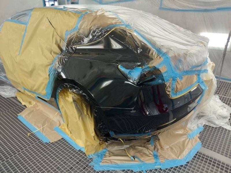 鈑金作業後、お車を塗装ブースの中に入れて塗装作業に入ります!