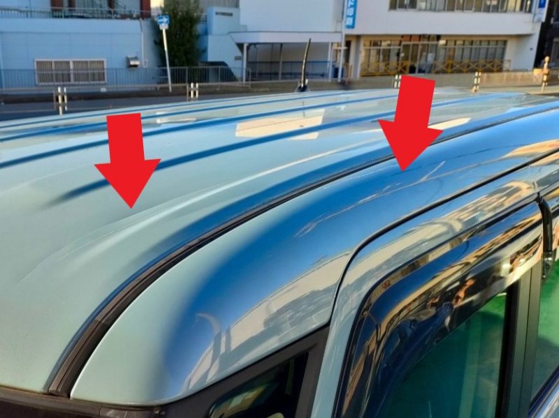 ルーフ(屋根)と左ルーフピラー(ルーフ横のパネル部分)に傷・へこみがありました。