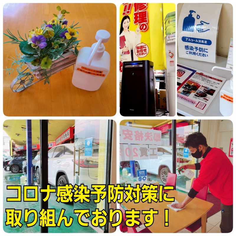 カーコンビニ俱楽部 八尾店は、コロナ感染予防として、各テーブルにアルコール消毒液の設置・プラズマクラスター空気清浄機設置・出入口の換気・お客様のテーブル・イスの除菌を徹底しております!