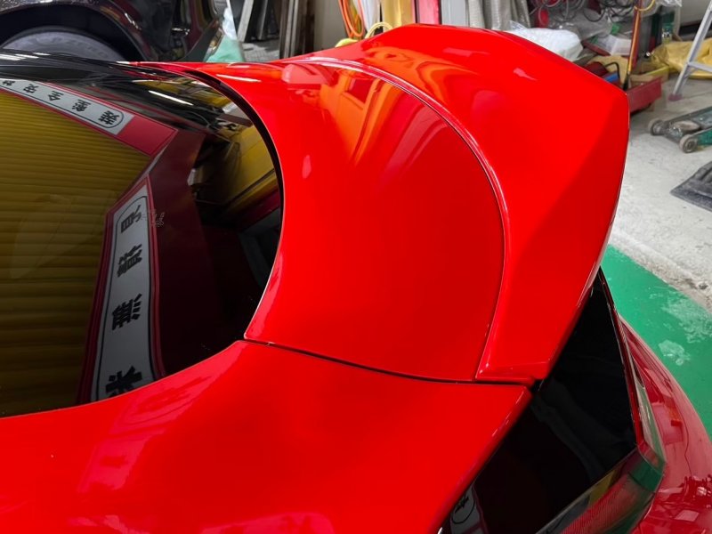 ダックテール(自動車後部デザインの一種で、アヒルの尾のように跳ね上がった形状のリアスポイラーのことです)取り付け・塗装のご依頼です!