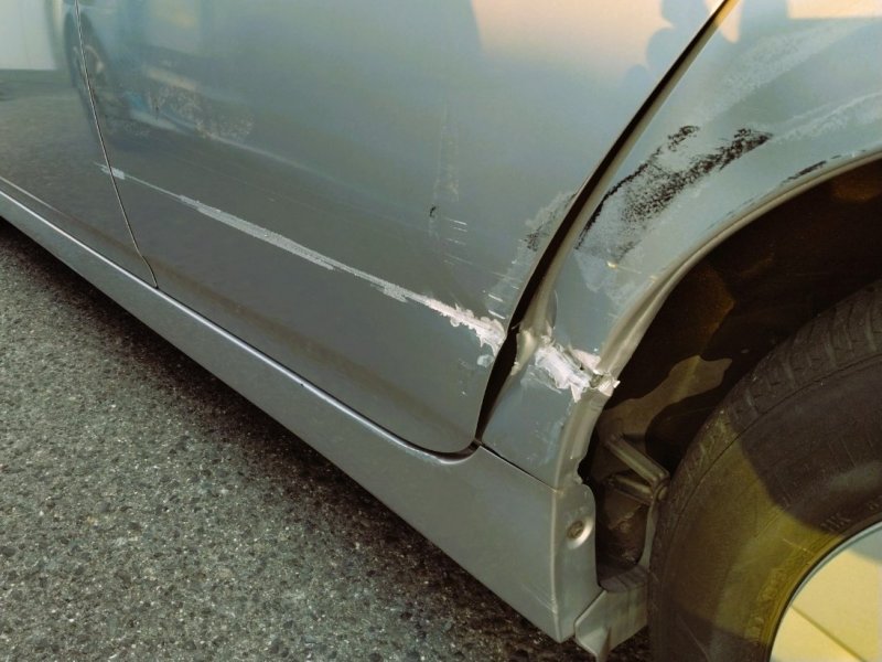 左側面がフロントドアからリアバンパーまで損傷を受けていました。特に一番損傷が酷かった左リアフェンダー(クォーターパネル)は裂けてしまうほどでした。