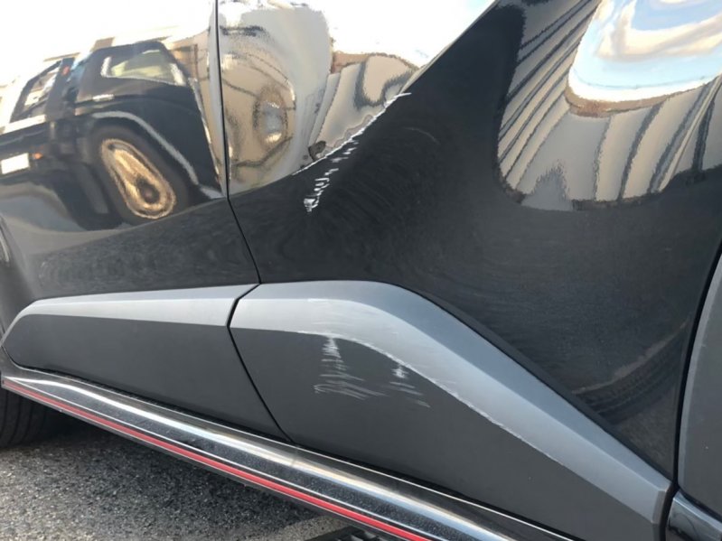 ドアは鈑金塗装で修理をして、プロテクターモール(素地の部品)は、新品部品に交換させていただきました。