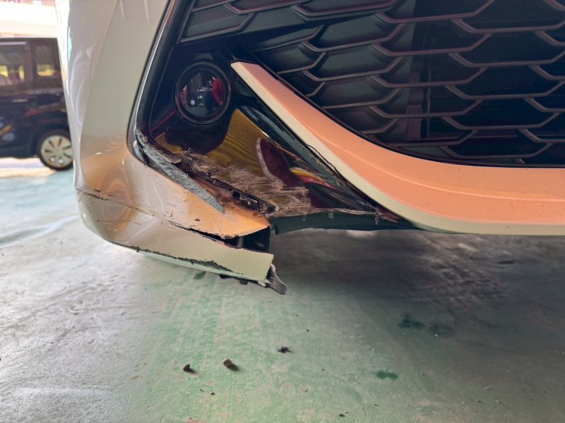 フロント事故修理(フロントバンパーリサイクルパーツ交換)・右ヘッドライト磨き作業(サービス)
