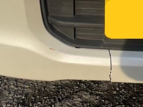 フロントバンパーがぶつかった衝撃で割れていました。お見積りに行かれるお店によっては交換を勧められることが多いケースですが、当店には鈑金・塗装、それぞれで作業経験豊富なベテラン職人が揃っておりますので、交換レベルの損傷も修理で直すことが出来ます!