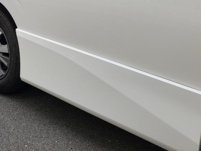 右スライドドアのプロテクターモール(エアロパネル)の破損です。新品部品に交換させていただきました。