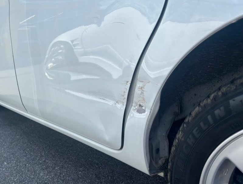 左リアフェンダー(クォーターパネル)と左スライドドアの損傷でご入庫