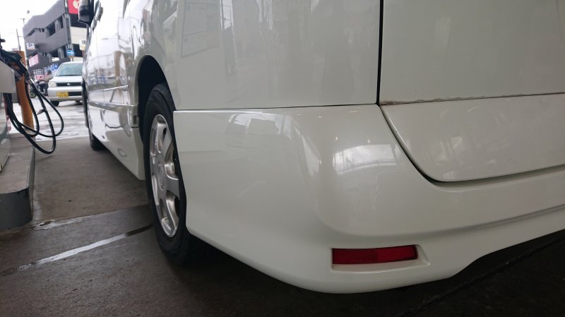左クォーターパネルの凹みの鈑金塗装とリアバンパー破損のため、バンパー交換です。