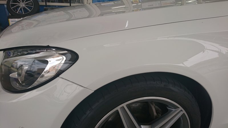 ベンツはボンネット、フェンダー、ドアはアルミで出来ているので、基本的に鈑金は出来ませんが、ご要望により鈑金で直しました。