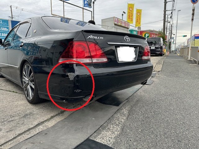 大阪 北摂 高槻 茨木 赤大路 富田丘町 R171 クラウン リヤバンパー鈑金塗装