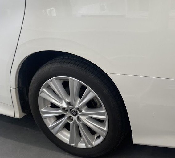 福岡県福岡市西区|アルファード(トヨタ)のキズ・へこみ直し事例(左後ろタイヤ上(フェンダー) 車 キズ ヘコミ 修理 鈑金)